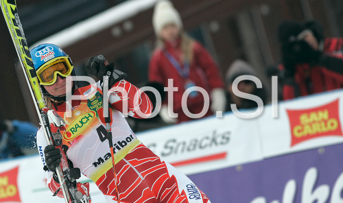 Maribor ,Slovenia - 11.01.2009 : Third placed Tanja Poutiainen of Finland reacts in finish of second run of Maribor women slalom race of Audi FIS Ski World Cup 2008-09. Slalom race of Women Audi FIS Ski World Cup 2008-09 was held in Maribor, Slovenia on Sunday, 11th of January 2009. Photo by: Primoz Jeroncic