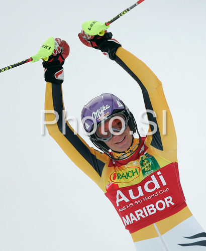 Maribor ,Slovenia - 11.01.2009 : Winner Maria Riesch of Germany reacts in finish of second run of Maribor women slalom race of Audi FIS Ski World Cup 2008-09. Slalom race of Women Audi FIS Ski World Cup 2008-09 was held in Maribor, Slovenia on Sunday, 11th of January 2009. Photo by: Primoz Jeroncic