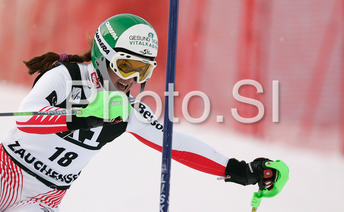 : Fifth placed Elisabeth Goergl of Austria skiing in slalom of Zauchenee women super combined race of Audi FIS Ski World Cup 2008-09. Downhill part of super combined race of Women Audi FIS Ski World Cup 2008-09 was held in Zauchensee, Austria on Saturday, 17th of January 2009.