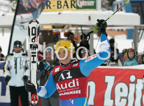 Zauchensee ,Austria - 17.01.2009 : Third placed Anja Paerson of Sweden celebrates her medal won in Zauchenee women super combined race of Audi FIS Ski World Cup 2008-09. Downhill part of super combined race of Women Audi FIS Ski World Cup 2008-09 was held in Zauchensee, Austria on Saturday, 17th of January 2009. Photo by: Primoz Jeroncic