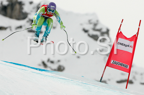 : Tenth placed Tina Maze of Slovenia skiing in Women downhill race of Zauchenee Audi FIS Ski World Cup 2008-09. Downhill race of Women Audi FIS Ski World Cup 2008-09 was held in Zauchensee, Austria on Sunday, 18th of January 2009.