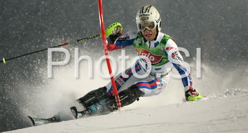: Julien Lizeroux of France skiing in first run of Men slalom race of Schladming Audi FIS Ski World Cup 2008-09. Schladming slalom Nightrace of Men Audi FIS Ski World Cup 2008-09 was held in Schladming, Austria on Sunday, 27th of January 2009.