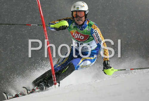 Schladming ,Austria - 27.01.2009 : Mattias Hargin of Sweden skiing in first run of Men slalom race of Schladming Audi FIS Ski World Cup 2008-09. Schladming slalom Nightrace of Men Audi FIS Ski World Cup 2008-09 was held in Schladming, Austria on Sunday, 27th of January 2009. Photo by: Primoz Jeroncic
