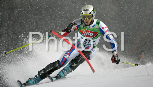 : Steve Missillier of France skiing in first run of Men slalom race of Schladming Audi FIS Ski World Cup 2008-09. Schladming slalom Nightrace of Men Audi FIS Ski World Cup 2008-09 was held in Schladming, Austria on Sunday, 27th of January 2009.