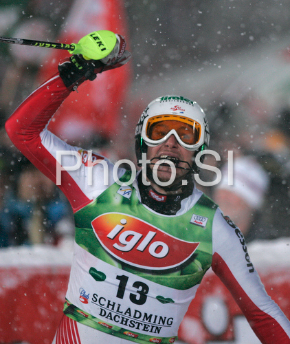 : Second placed Manfred Pranger of Austria reacts in finish of second run of Men slalom race of Schladming Audi FIS Ski World Cup 2008-09. Schladming slalom Nightrace of Men Audi FIS Ski World Cup 2008-09 was held in Schladming, Austria on Sunday, 27th of January 2009.