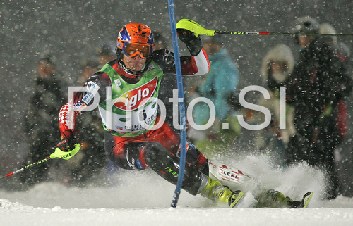 : Third placed Ivica Kostelic of Croatia skiing in second run of Men slalom race of Schladming Audi FIS Ski World Cup 2008-09. Schladming slalom Nightrace of Men Audi FIS Ski World Cup 2008-09 was held in Schladming, Austria on Sunday, 27th of January 2009.