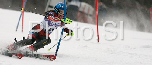 : Fourth placed after first run Ana Jelusic of Croatia skiing in first run of Women slalom race of Garmisch-Partenkirchen Audi FIS Ski World Cup 2008-09. Garmisch-Partenkirchen slalom Women Audi FIS Ski World Cup 2008-09 was held in Garmisch-Partenkirchen on Friday, 30th of January 2009.
