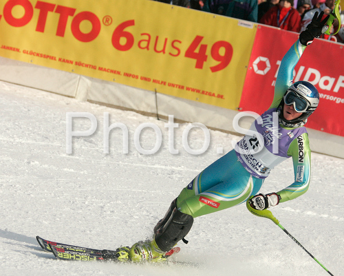 : Third placed Marusa Ferk of Slovenia reacts in finish of second run of Women slalom race of Garmisch-Partenkirchen Audi FIS Ski World Cup 2008-09. Garmisch-Partenkirchen slalom Women Audi FIS Ski World Cup 2008-09 was held in Garmisch-Partenkirchen on Friday, 30th of January 2009.