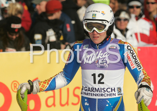 : Therese Borssen of Sweden reacts in finish of second run of Women slalom race of Garmisch-Partenkirchen Audi FIS Ski World Cup 2008-09. Garmisch-Partenkirchen slalom Women Audi FIS Ski World Cup 2008-09 was held in Garmisch-Partenkirchen on Friday, 30th of January 2009.