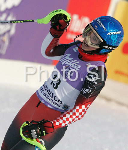 : Fourth placed Ana Jelusic of Croatia reacts in finish of second run of Women slalom race of Garmisch-Partenkirchen Audi FIS Ski World Cup 2008-09. Garmisch-Partenkirchen slalom Women Audi FIS Ski World Cup 2008-09 was held in Garmisch-Partenkirchen on Friday, 30th of January 2009.