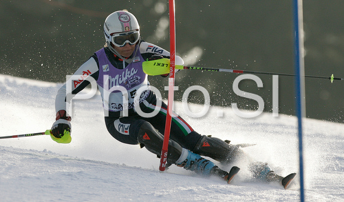 : Manuela Moelgg of Italy skiing in second run of Women slalom race of Garmisch-Partenkirchen Audi FIS Ski World Cup 2008-09. Garmisch-Partenkirchen slalom Women Audi FIS Ski World Cup 2008-09 was held in Garmisch-Partenkirchen on Friday, 30th of January 2009.