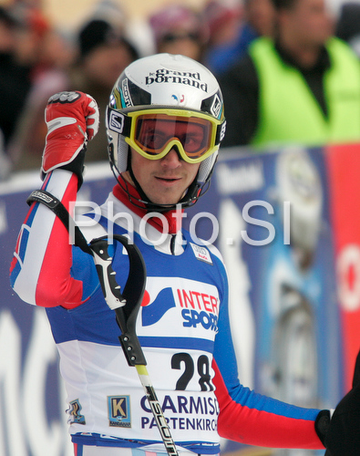 : Steve Missillier of France reacts in finish of second run of Men slalom race of Garmisch-Partenkirchen Audi FIS Ski World Cup 2008-09. Garmisch-Partenkirchen slalom Men Audi FIS Ski World Cup 2008-09 was held in Garmisch-Partenkirchen on Sunday, 1st of February 2009.