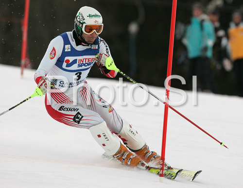 : Manfred Pranger of Austria skiing in first run of Men slalom race of Garmisch-Partenkirchen Audi FIS Ski World Cup 2008-09. Garmisch-Partenkirchen slalom Men Audi FIS Ski World Cup 2008-09 was held in Garmisch-Partenkirchen on Sunday, 1st of February 2009.