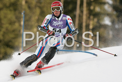 Tarvisio ,Italy - 20.02.2009 : Aurelie Revillet of France skiing in slalom part of Women Super combined race of Tarvisio Audi FIS Ski World Cup 2008-09. Super combined race of Women Audi FIS Ski World Cup 2008-09 was held in Tarvisio, Italy on Friday, 20th of February 2009. Photo by: Primoz Jeroncic