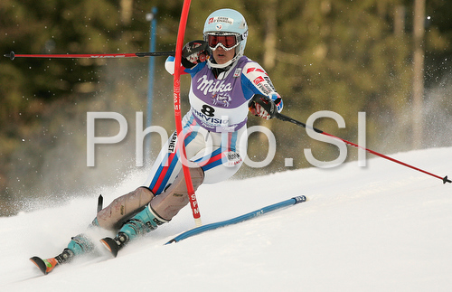 : Marie Marchand-Arvier of France skiing in slalom part of Women Super combined race of Tarvisio Audi FIS Ski World Cup 2008-09. Super combined race of Women Audi FIS Ski World Cup 2008-09 was held in Tarvisio, Italy on Friday, 20th of February 2009.