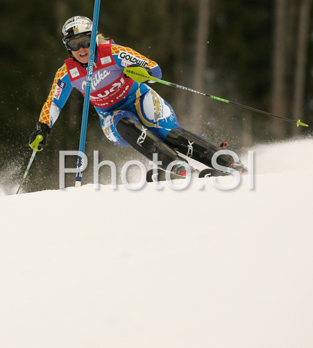 : Fifth placed Anja Paerson of Sweden skiing in slalom part of Women Super combined race of Tarvisio Audi FIS Ski World Cup 2008-09. Super combined race of Women Audi FIS Ski World Cup 2008-09 was held in Tarvisio, Italy on Friday, 20th of February 2009.