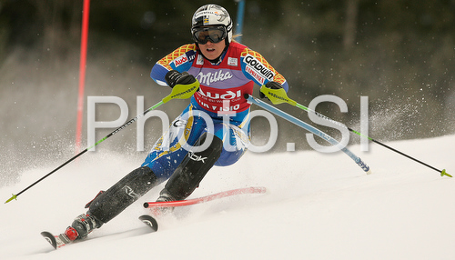 : Fifth placed Anja Paerson of Sweden skiing in slalom part of Women Super combined race of Tarvisio Audi FIS Ski World Cup 2008-09. Super combined race of Women Audi FIS Ski World Cup 2008-09 was held in Tarvisio, Italy on Friday, 20th of February 2009.
