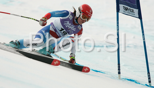 Tarvisio ,Italy - 22.02.2009 : Second placed Fabienne Suter of Switzerland skiing in Women Super-G race of Tarvisio Audi FIS Ski World Cup 2008-09. Downhill race of Women Audi FIS Ski World Cup 2008-09 was held in Tarvisio, Italy on Sunday, 22nd of February 2009. Photo by: Primoz Jeroncic