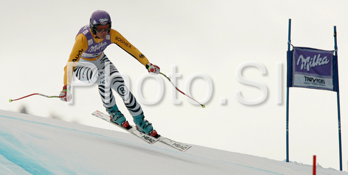 : Maria Riesch of Germany skiing in Women Super-G race of Tarvisio Audi FIS Ski World Cup 2008-09. Downhill race of Women Audi FIS Ski World Cup 2008-09 was held in Tarvisio, Italy on Sunday, 22nd of February 2009.