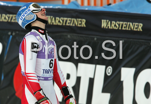 : Fourth placed Kathrin Zettel of Austria reacts in finish of Women Super-G race of Tarvisio Audi FIS Ski World Cup 2008-09. Downhill race of Women Audi FIS Ski World Cup 2008-09 was held in Tarvisio, Italy on Sunday, 22nd of February 2009.