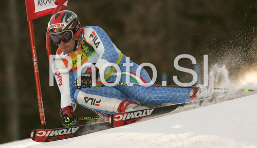 : Peter Fill of Italy skiing in first run of Men giant slalom race of Kranjska Gora Audi FIS Ski World Cup 2008-09. Giant slalom race of Men Audi FIS Ski World Cup 2008-09 was held in Kranjska Gora, Slovenia, on Saturday, 28th of February 2009.