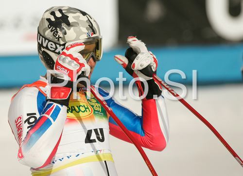: Tenth placed Thomas Fanara of France reacts in finish of second run of Men giant slalom race of Kranjska Gora Audi FIS Ski World Cup 2008-09. Giant slalom race of Men Audi FIS Ski World Cup 2008-09 was held in Kranjska Gora, Slovenia, on Saturday, 28th of February 2009.