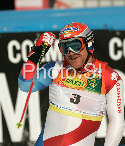 Kranjska Gora ,Slovenia - 28.02.2009 : Second placed Didier Cuche of Switzerland reacts in finish of second run of Men giant slalom race of Kranjska Gora Audi FIS Ski World Cup 2008-09. Giant slalom race of Men Audi FIS Ski World Cup 2008-09 was held in Kranjska Gora, Slovenia, on Saturday, 28th of February 2009. Photo by: Primoz Jeroncic