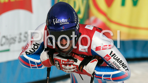 : Jean-Baptiste Grange of France reacts in finish of second run of Men slalom race of Kranjska Gora Audi FIS Ski World Cup 2008-09. Slalom race of Men Audi FIS Ski World Cup 2008-09 was held in Kranjska Gora, Slovenia, on Sunday, 1st of March 2009.