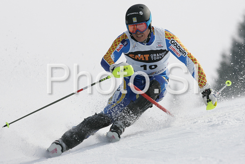 Kranjska Gora ,Slovenia - 01.03.2009 : Ninth placed Andre Myhrer of Sweden skiing in second run of Men slalom race of Kranjska Gora Audi FIS Ski World Cup 2008-09. Slalom race of Men Audi FIS Ski World Cup 2008-09 was held in Kranjska Gora, Slovenia, on Sunday, 1st of March 2009. Photo by: Mitja Smid Bricelj