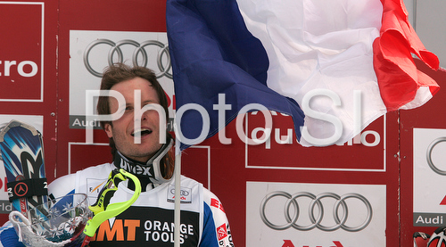 Kranjska Gora ,Slovenia - 01.03.2009 : Winner Julien Lizeroux of France celebrates his medal won in Men slalom race of Kranjska Gora Audi FIS Ski World Cup 2008-09. Slalom race of Men Audi FIS Ski World Cup 2008-09 was held in Kranjska Gora, Slovenia, on Sunday, 1st of March 2009. Photo by: Primoz Jeroncic