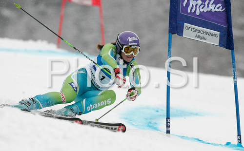 : Leader after first run Tina Maze of Slovenia skiing in first run of Women giant slalom race of Ofterschwang Audi FIS Ski World Cup 2008-09. Giant slalom race of Women Audi FIS Ski World Cup 2008-09 was held in Ofterschwang, Germany, on Friday, 6th of March 2009.