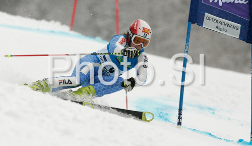 : Nicole Gius of Italy skiing in first run of Women giant slalom race of Ofterschwang Audi FIS Ski World Cup 2008-09. Giant slalom race of Women Audi FIS Ski World Cup 2008-09 was held in Ofterschwang, Germany, on Friday, 6th of March 2009.
