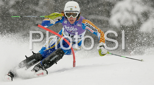 : Therese Borssen of Sweden skiing in first run of Women slalom race of Ofterschwang Audi FIS Ski World Cup 2008-09. Slalom race of Women Audi FIS Ski World Cup 2008-09 was held in Ofterschwang, Germany, on Saturday, 7th of March 2009.