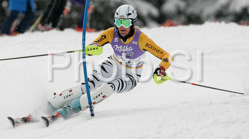 : Sixth placed Susanne Riesch of Germany skiing in second run of Women slalom race of Ofterschwang Audi FIS Ski World Cup 2008-09. Slalom race of Women Audi FIS Ski World Cup 2008-09 was held in Ofterschwang, Germany, on Saturday, 7th of March 2009.