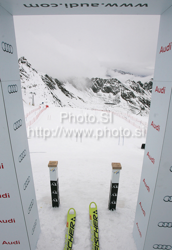 : Starting gate of Soelden women GS race, day before start of FIS Alpine ski World Cup 2009-2009 in Soelden, Austria on 23rd of October 2009.