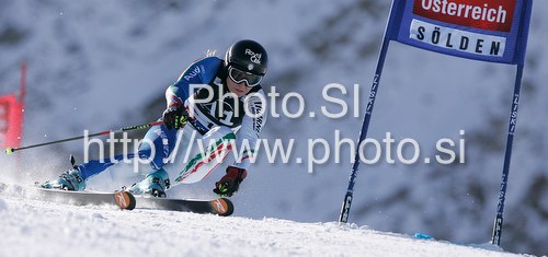 Soelden ,Austria - 24.10.2009 : Second placed after first run Manuela Moelgg of Italy skiing in first run of first Women GS FIS Alpine ski World Cup 2009-2010 race in Soelden, Austria. First giant slalom race of Women FIS Alpine ski World Cup was held on Rettenbach glacier above Soelden, Austria on 24th of October 2009. Photo by: Primoz Jeroncic