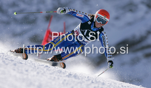 : Fifth placed after first run Denise Karbon of Italy skiing in first run of first Women GS FIS Alpine ski World Cup 2009-2010 race in Soelden, Austria. First giant slalom race of Women FIS Alpine ski World Cup was held on Rettenbach glacier above Soelden, Austria on 24th of October 2009.