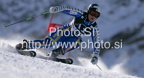: Tenth placed after first run Anja Paerson of Sweden skiing in first run of first Women GS FIS Alpine ski World Cup 2009-2010 race in Soelden, Austria. First giant slalom race of Women FIS Alpine ski World Cup was held on Rettenbach glacier above Soelden, Austria on 24th of October 2009.