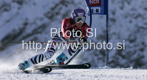 : Maria Riesch of Germany skiing in first run of first Women GS FIS Alpine ski World Cup 2009-2010 race in Soelden, Austria. First giant slalom race of Women FIS Alpine ski World Cup was held on Rettenbach glacier above Soelden, Austria on 24th of October 2009.