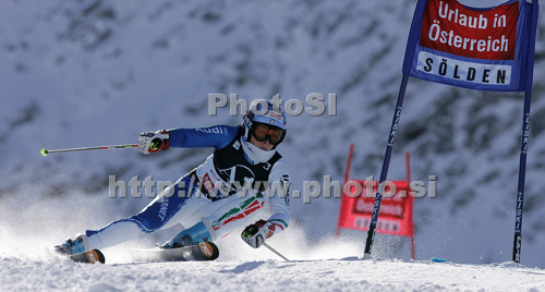 : Federica Brignone of Italy skiing in first run of first Women GS FIS Alpine ski World Cup 2009-2010 race in Soelden, Austria. First giant slalom race of Women FIS Alpine ski World Cup was held on Rettenbach glacier above Soelden, Austria on 24th of October 2009.