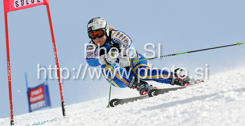 : Sixth placed Anja Paerson of Sweden skiing in second run of first Women GS FIS Alpine ski World Cup 2009-2010 race in Soelden, Austria. First giant slalom race of Women FIS Alpine ski World Cup was held on Rettenbach glacier above Soelden, Austria on 24th of October 2009.