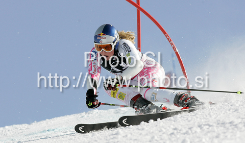 : Ninth placed Lindsey Vonn of USA skiing in second run of first Women GS FIS Alpine ski World Cup 2009-2010 race in Soelden, Austria. First giant slalom race of Women FIS Alpine ski World Cup was held on Rettenbach glacier above Soelden, Austria on 24th of October 2009.