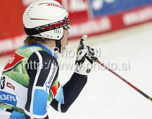 Soelden ,Austria - 25.10.2009 : Sixth placed Kjetil Jansrud of Norway reacts in finish of second run of first Men GS FIS Alpine ski World Cup 2009-2010 race in Soelden, Austria. First giant slalom race of Men FIS Alpine ski World Cup was held on Rettenbach glacier above Soelden, Austria on 25th of October 2009. Photo by: Leena Jeroncic