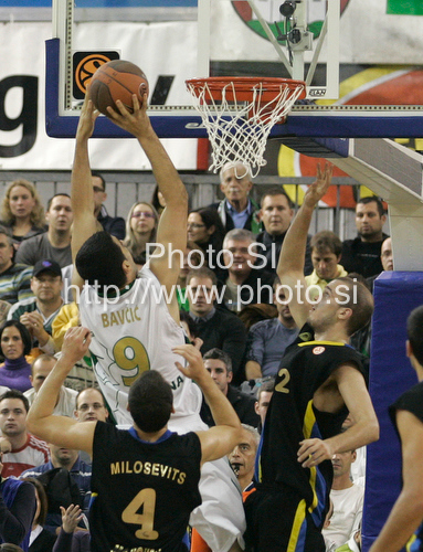 : Edin Bavcic of Union Olimpija scoring during match of Basketball Euroleague between Union Olimpija, Ljubljana, Slovenia and Maroussi BC, Athens, Greece. Match between Union Olimpija and Maroussi BC was played on 29th of October 2009 in Tivoli Arena in Ljubljana, Slovenia.