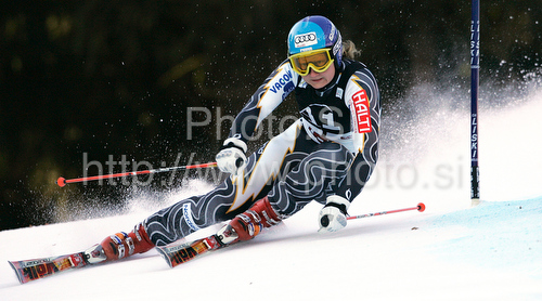 : Tanja Poutiainen of Finland skiing in first run of women giant slalom World Cup race in Lienz, Austra. Giant slalom race of Women Audi FIS Alpine skiing World Cup 2009-10 was held in Lienz, Slovenia, on 28th of December 2009.