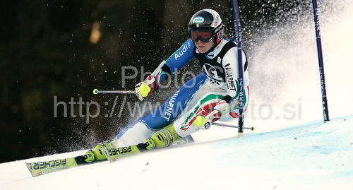 : Denise Karbon of Italy skiing in first run of women giant slalom World Cup race in Lienz, Austra. Giant slalom race of Women Audi FIS Alpine skiing World Cup 2009-10 was held in Lienz, Slovenia, on 28th of December 2009.