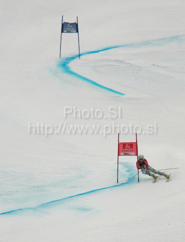 : Winner Kathrin Hoelzl of Germany skiing in second run of women giant slalom World Cup race in Lienz, Austra. Giant slalom race of Women Audi FIS Alpine skiing World Cup 2009-10 was held in Lienz, Slovenia, on 28th of December 2009.