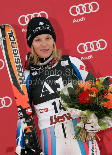 Lienz ,Austria - 28.12.2009 : celebrates her medal won in women giant slalom World Cup race in Lienz, Austra. Giant slalom race of Women Audi FIS Alpine skiing World Cup 2009-10 was held in Lienz, Slovenia, on 28th of December 2009. Photo by: Primoz Jeroncic