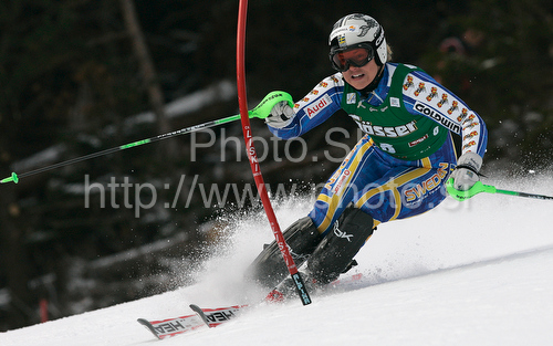 Lienz ,Austria - 29.12.2009 : Anja Paerson of Sweden skiing in first run of women slalom World Cup race in Lienz, Austra. Slalom race of Women Audi FIS Alpine skiing World Cup 2009-10 was held in Lienz, Austria, on 29th of December 2009. Photo by: Primoz Jeroncic
