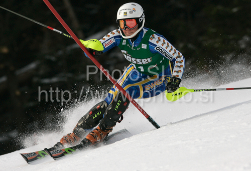 : Frida Hansdotter of Sweden skiing in first run of women slalom World Cup race in Lienz, Austra. Slalom race of Women Audi FIS Alpine skiing World Cup 2009-10 was held in Lienz, Austria, on 29th of December 2009.